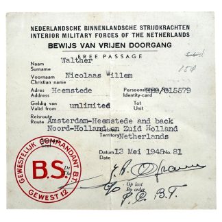 Original WWII US presidential certificate signed by Dwight D. Eisenhower, awarded to Dutch resistance fighter Hendrik ter Avest (Wierden)