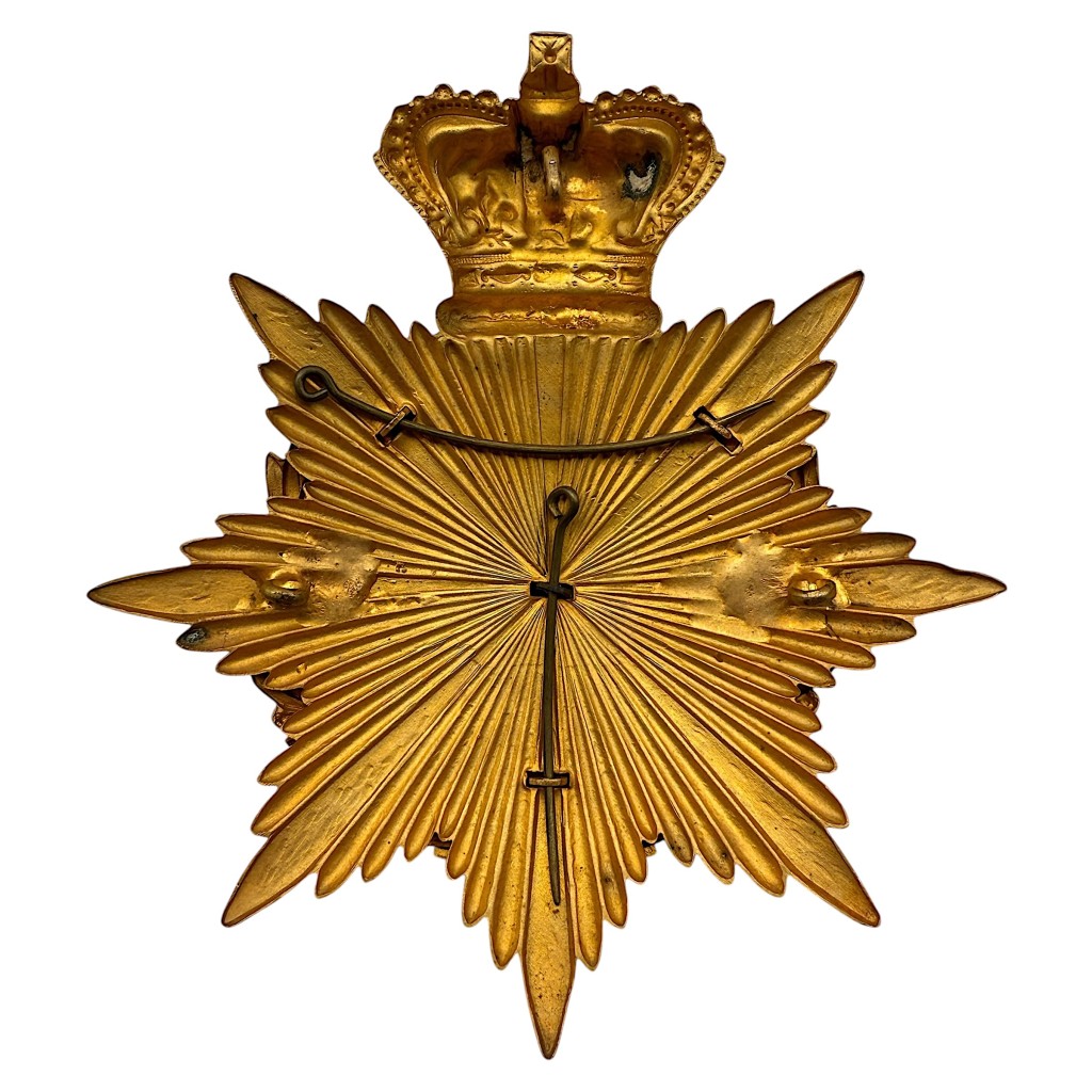 This British helmet plate of the North Staffordshire Regiment dates from the late Victorian to early Edwardian period and was worn on the Home Service Helmet between circa 1878 and 1908.