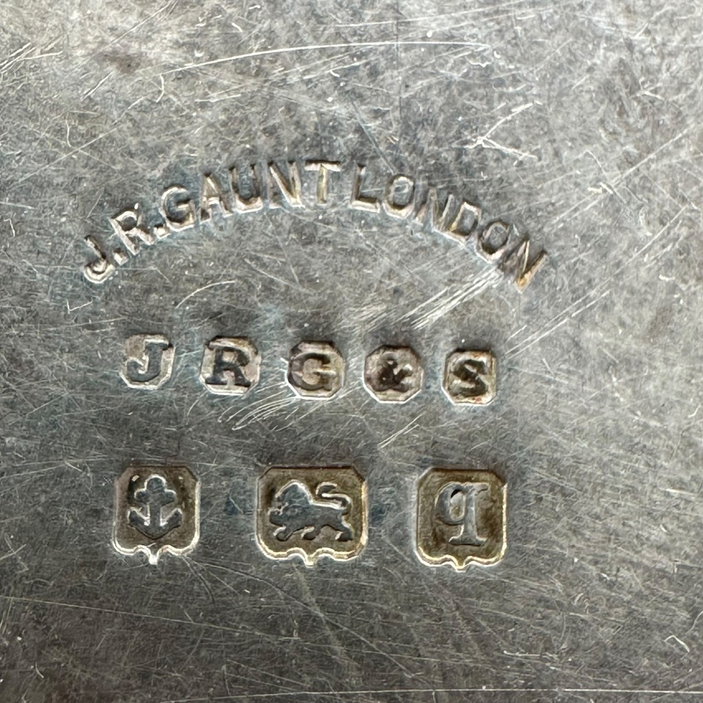 Het stuk is vervaardigd uit zilver en draagt op de achterzijde duidelijke keurmerken en de makersmarkering van J.R. Gaunt London, een vooraanstaande producent van Britse militaire insignes.