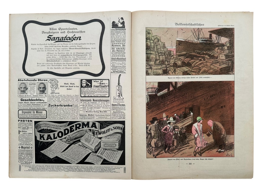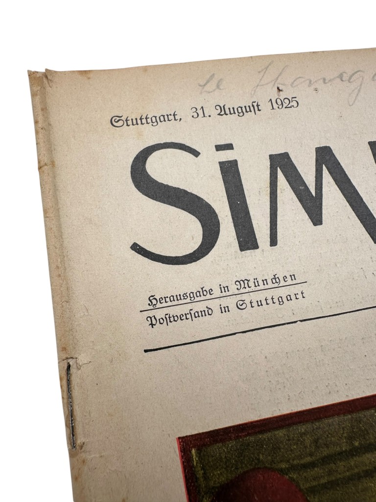 Original issue of the German satirical weekly Simplicissimus, published in Stuttgart on August 31, 1925.