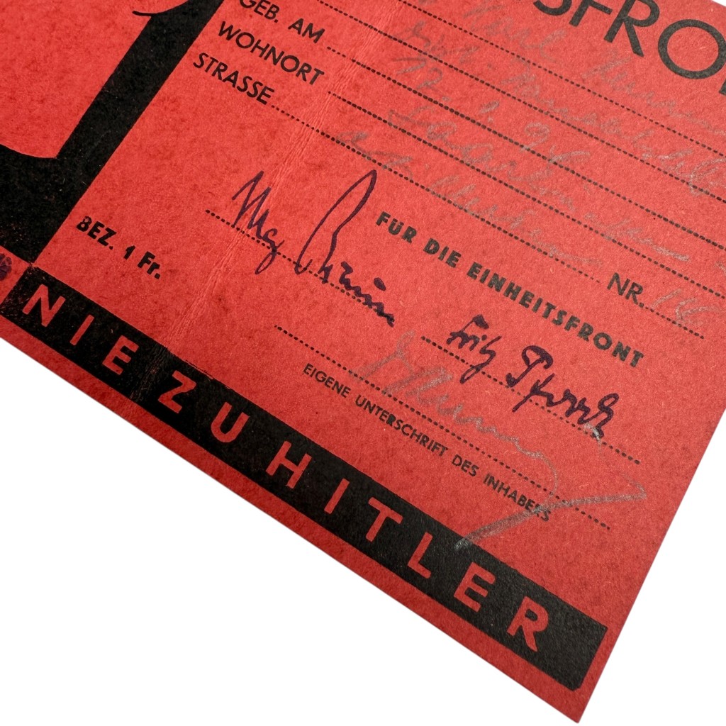Original 1930s German Einheitsfront ‘Anti-Hitler’ Ausweis