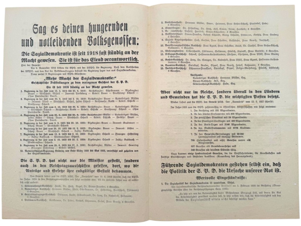 Originele Duitse verkiezingspropaganda flyer uit 1932 afkomstig uit de cruciale periode van de Weimarrepubliek.