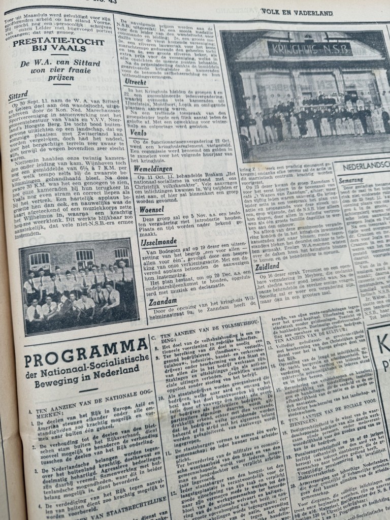 It is the official weekly newspaper of the National Socialist Movement (NSB), in which the ideology, propaganda and organisation of this movement are presented extensively and without filtering.