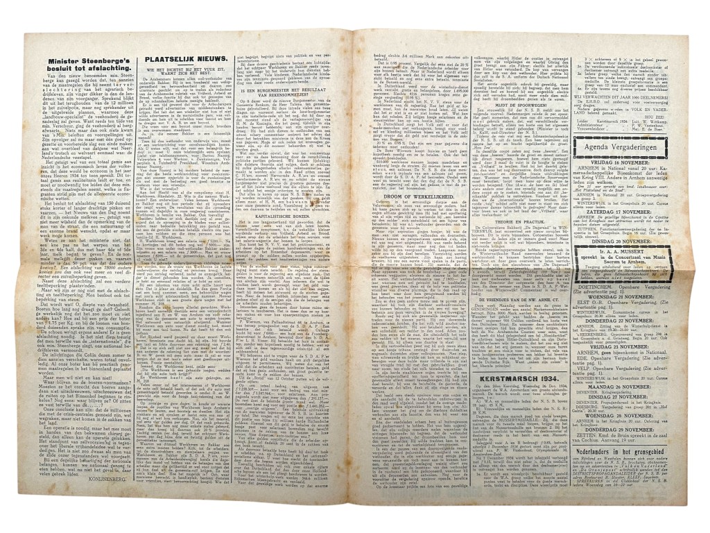This weekly newspaper for Gelderland and Overijssel was a regional publication of the National Socialist Movement (NSB) in the Netherlands, under the leadership of Ir. A.A. Mussert. During this period, the editorial office and administration were based in Doesburg (Meipoortstraat B. 14).