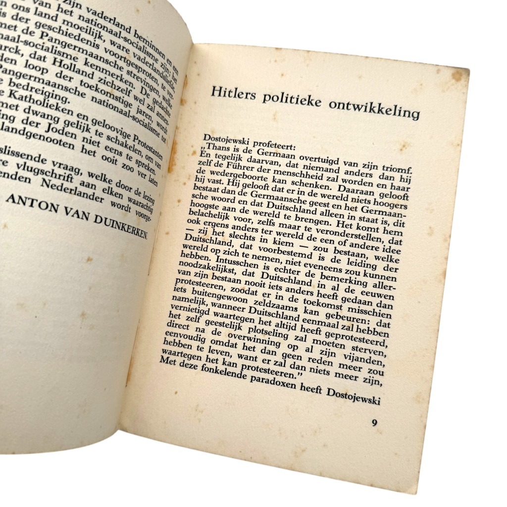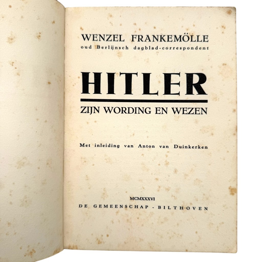 This Dutch book “Hitler – Zijn wording en wezen” (1936) was written by Wenzel Frankemölle, former Berlin newspaper correspondent, with an introduction by the renowned Dutch writer and critic Anton van Duinkerken.