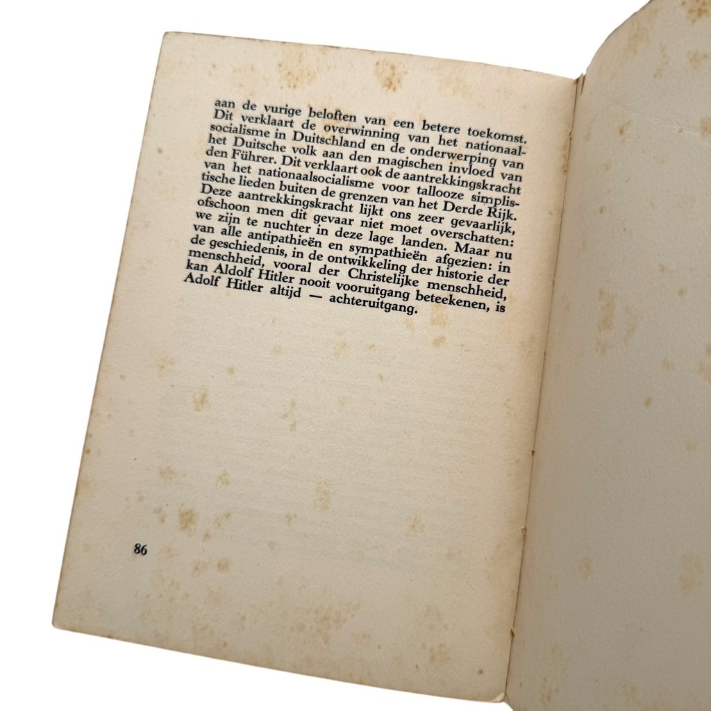 Published by De Gemeenschap, Bilthoven, at a time when Hitler’s power in Europe was rapidly increasing, this book offers an early analysis of his character, his political development, and his foreign policy.
