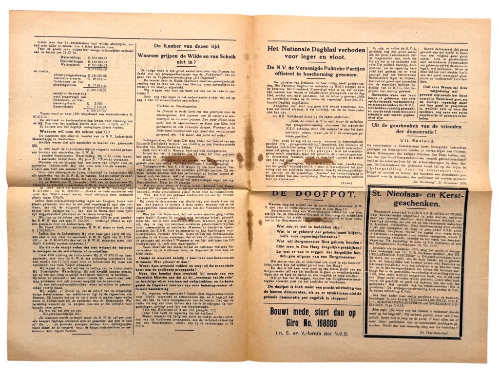 Local NSB newspapers are rare, as they were produced in limited numbers and were often deliberately destroyed after the Second World War. This copy is therefore a hard-to-find historical item for collectors and researchers interested in Dutch pre-war history, political propaganda, and original NSB documentation.