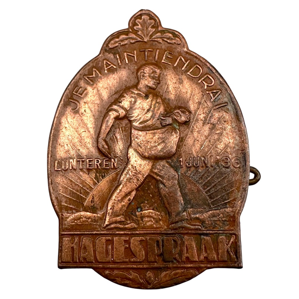 De onderzijde draagt duidelijk de tekst “Hagespraak”, verwijzend naar de massabijeenkomsten van de Nationaal-Socialistische Beweging in Nederland.