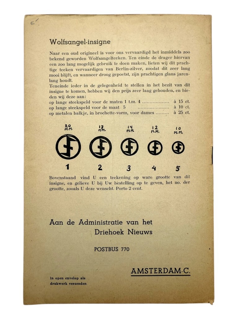 This Dutch NSB brochure titled “Driehoek Nieuws” is in good condition and was published in July 1939.
