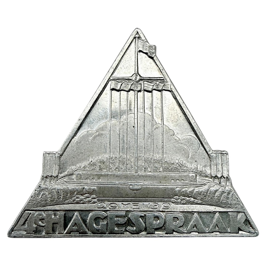 This original Dutch NSB badge commemorates the Hagespraak of 29 May 1939 and is executed in a distinctive triangular shape.