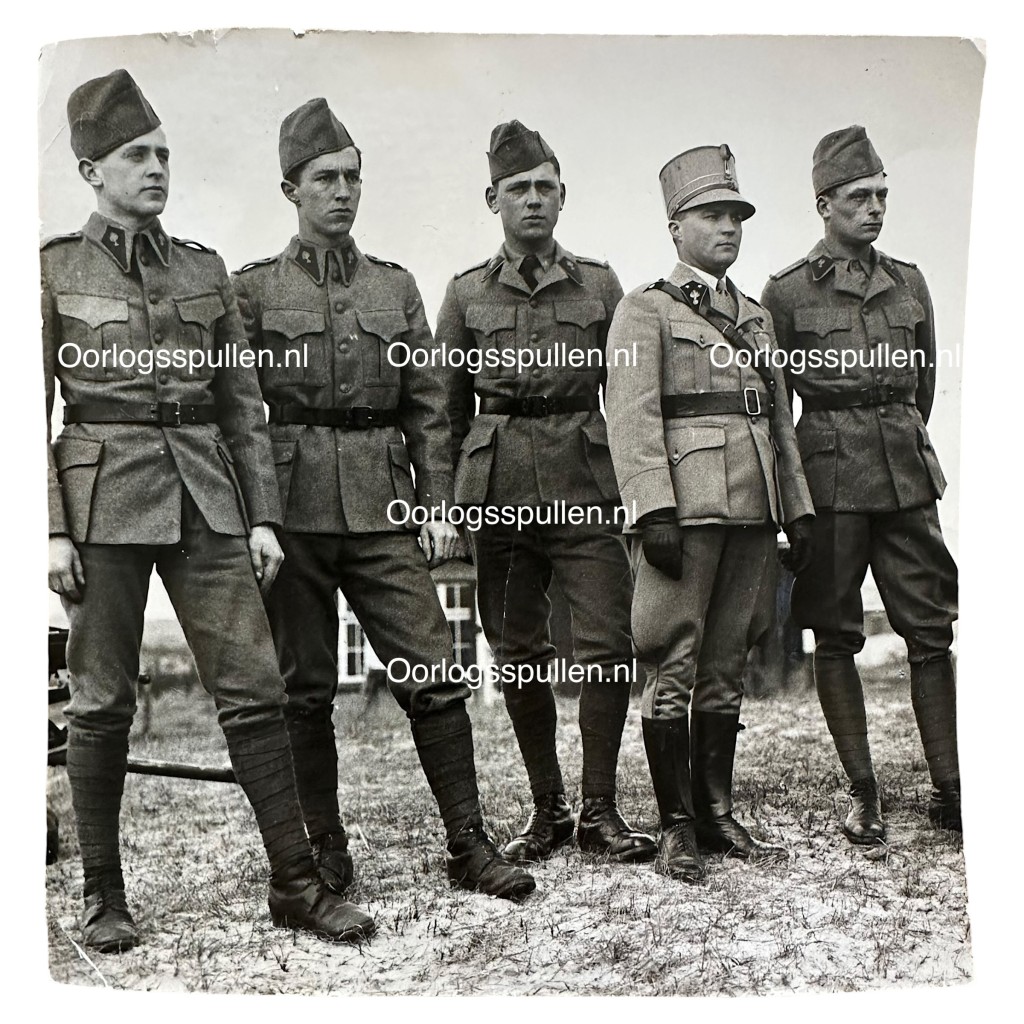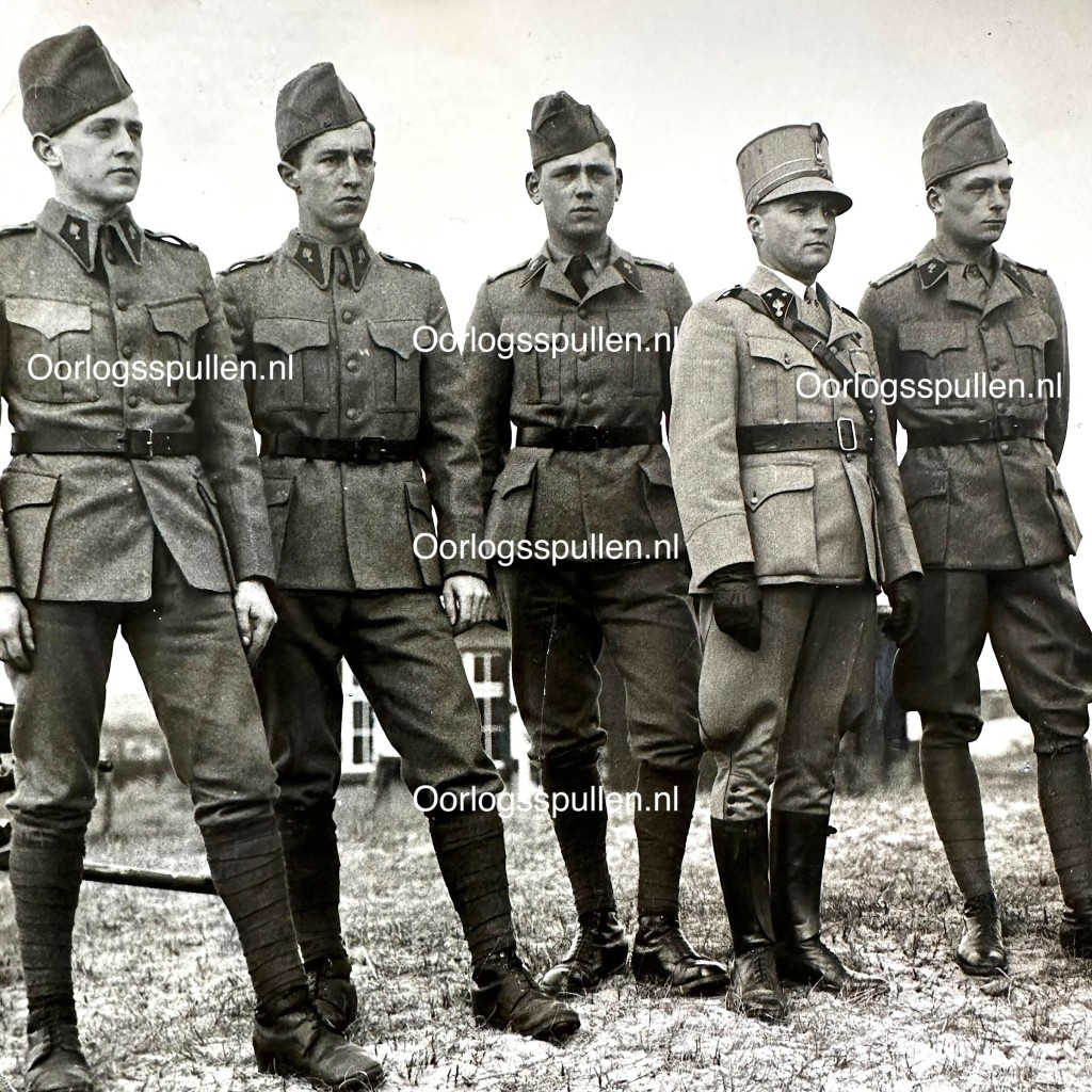Originele 1940 Nederlands leger foto met soldaten met ‘Proef Model’ uniformen