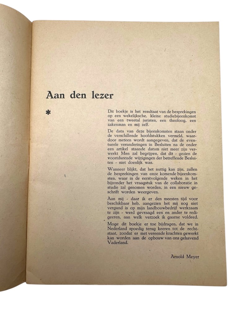 Original 1945 Dutch brochure Heftige verontwaardiging en rustige bezinning – Arnold Meyer