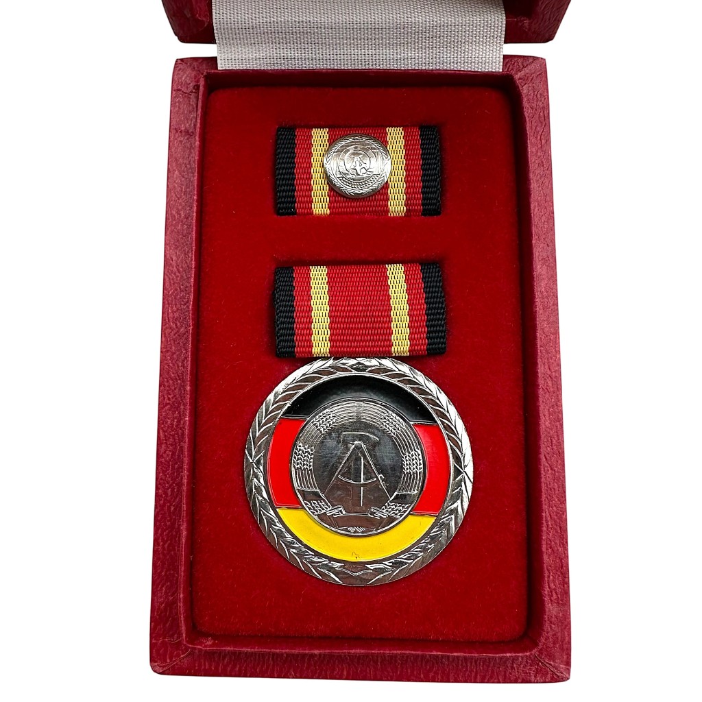 The medal features the national emblem of the DDR with hammer and compass surrounded by grain.