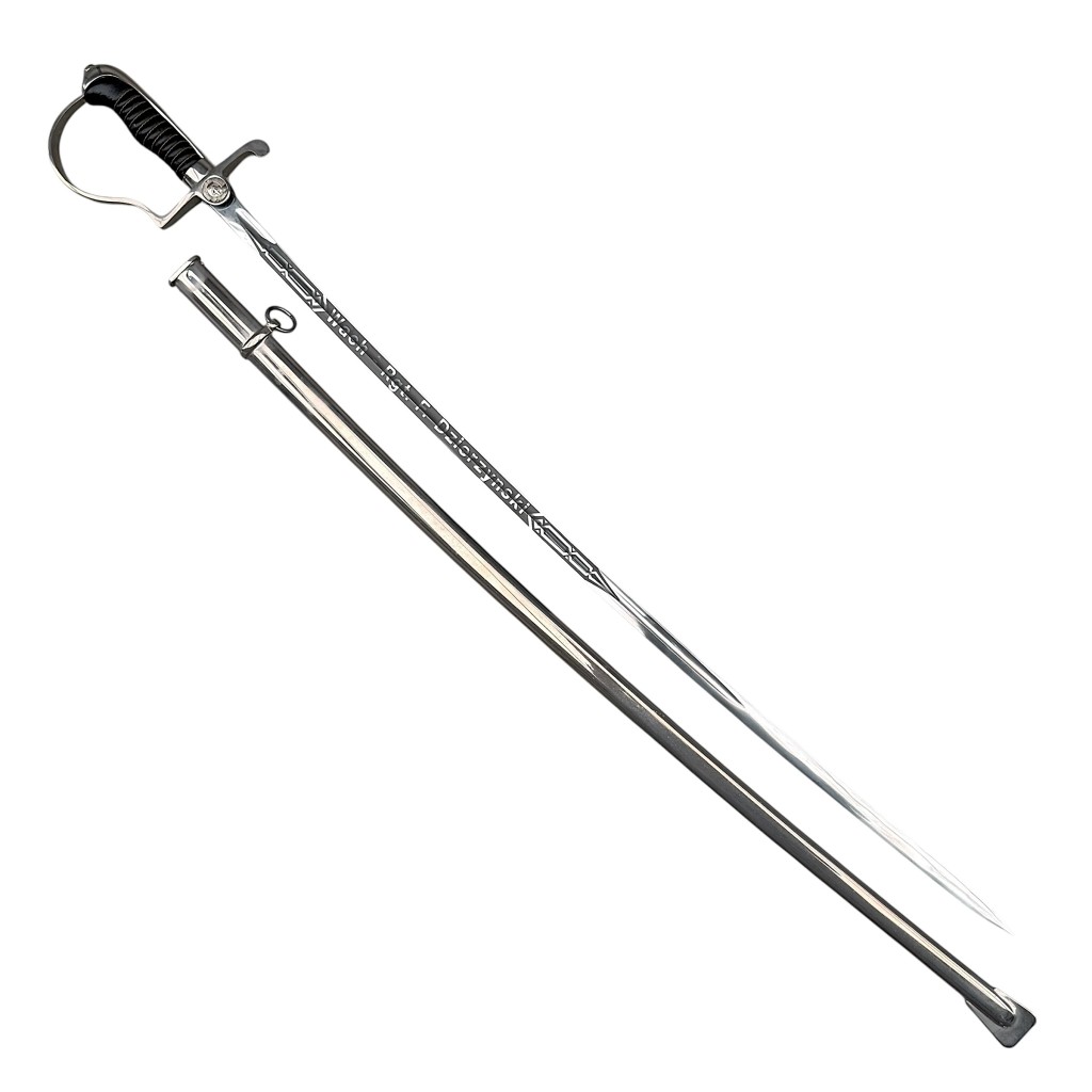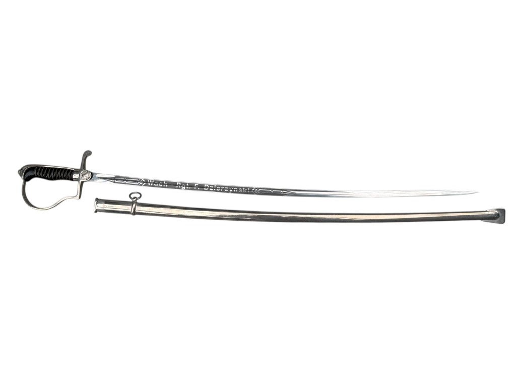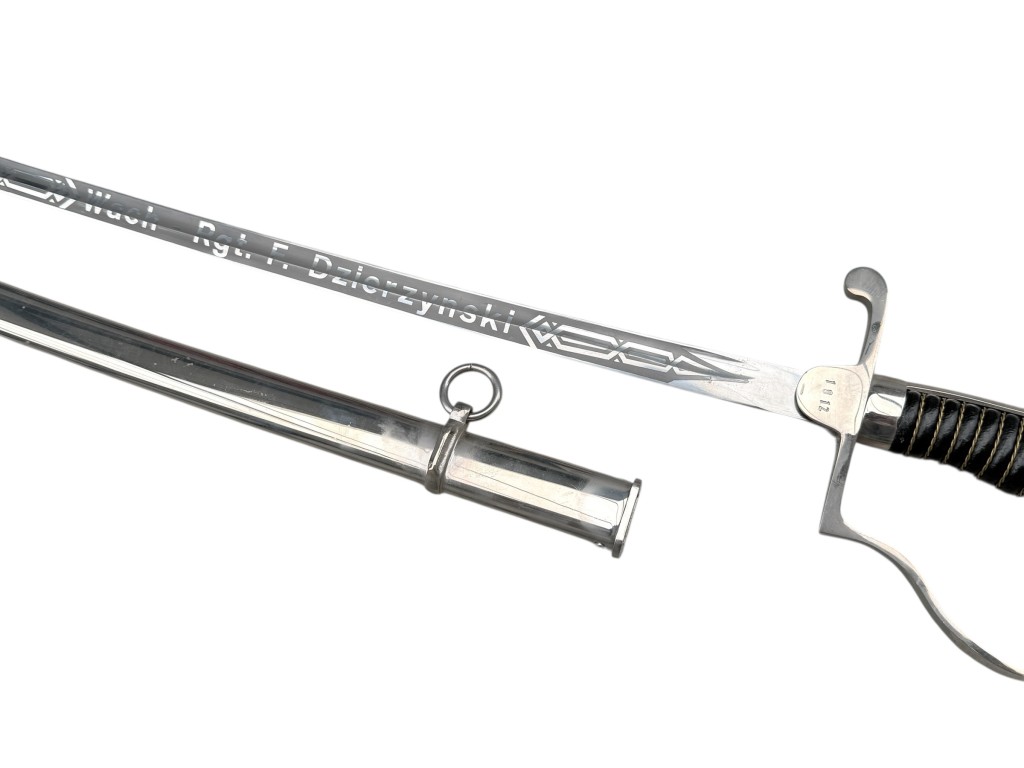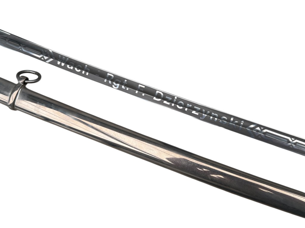 The blade bears a personal engraving reading “Wach Rgt. F. Dzierzynski”, adding historical significance to the piece.