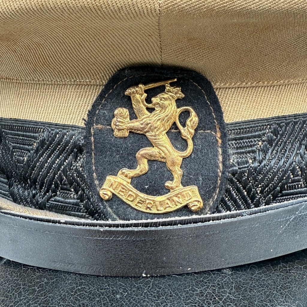 This KNIL (Royal Dutch East Indies Army) visor cap is in used condition and is complete with the insignia on the front.