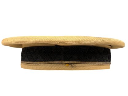 De pet is rondom voorzien van een zwarte band en een gouddraad bies.