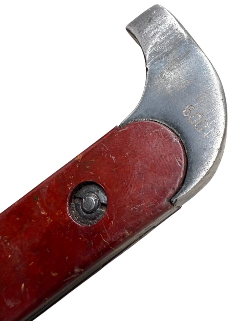 The handle is made of reddish-brown phenolic resin and has a rectangular profile, characteristic of this early production.