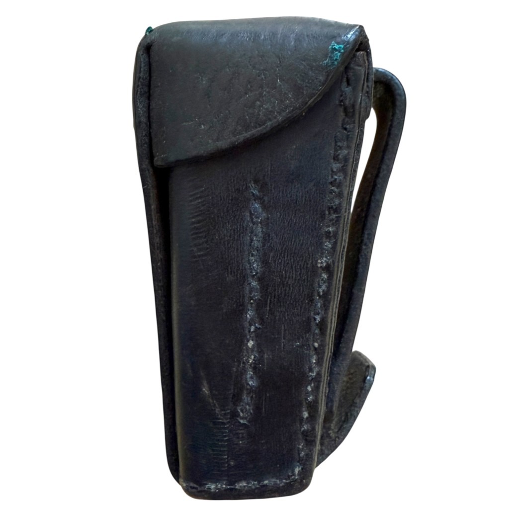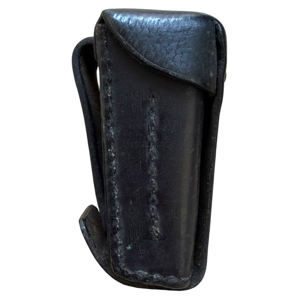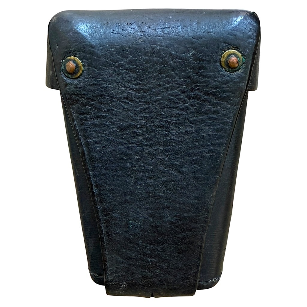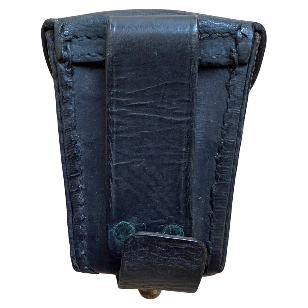 This pouch is dyed black and was used by the military police or police.