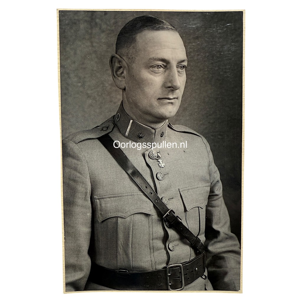 Deze Nederlandse portretfoto van A.J.E. Mathon, commandant van het Regiment Huzaren Motorrijders (2 R.H.M.), is een bijzonder en zeldzaam historische foto uit de periode voorafgaand aan de meidagen van 1940.