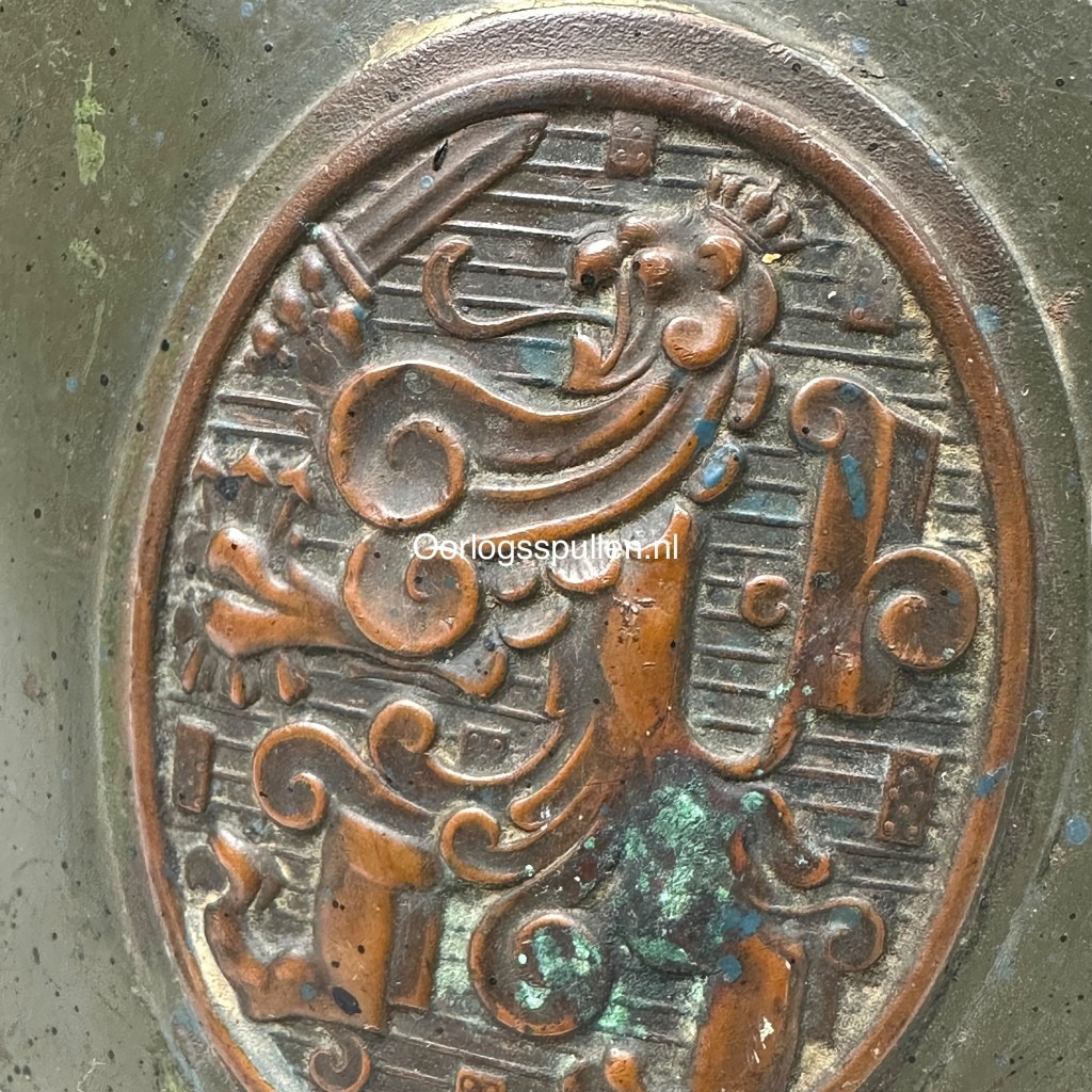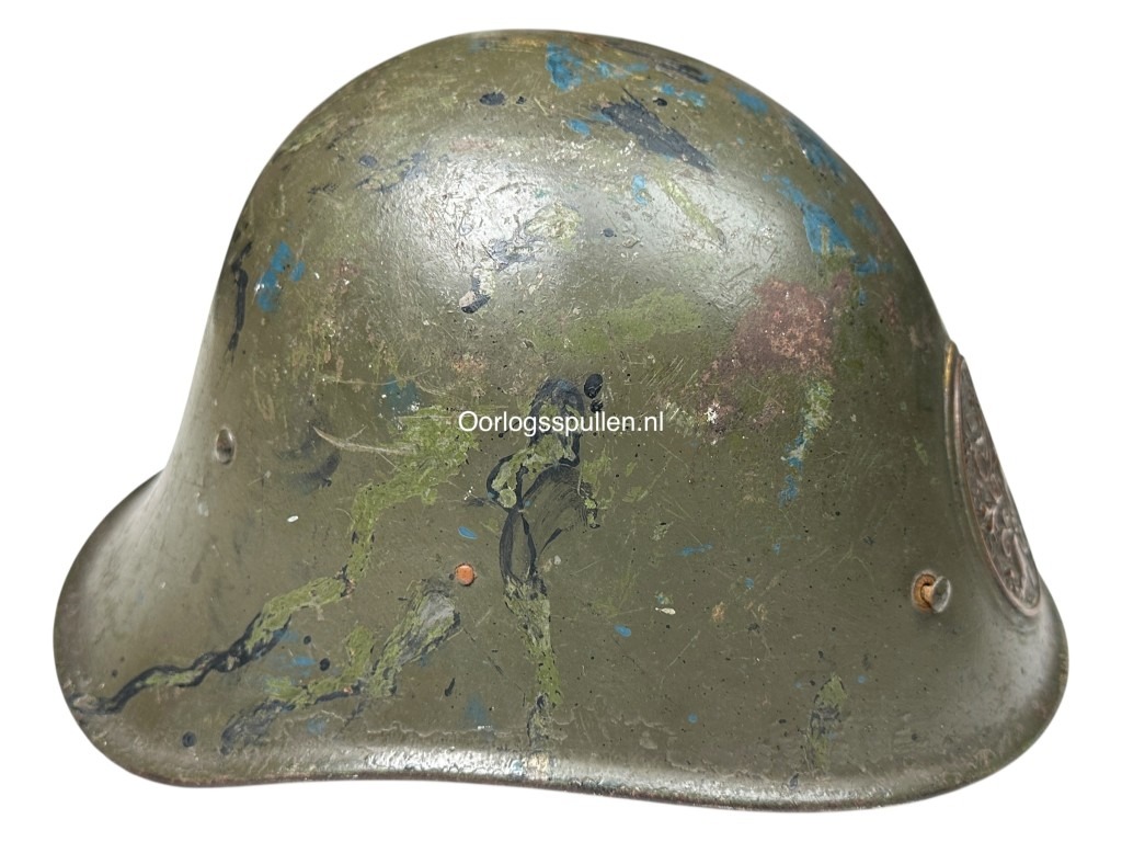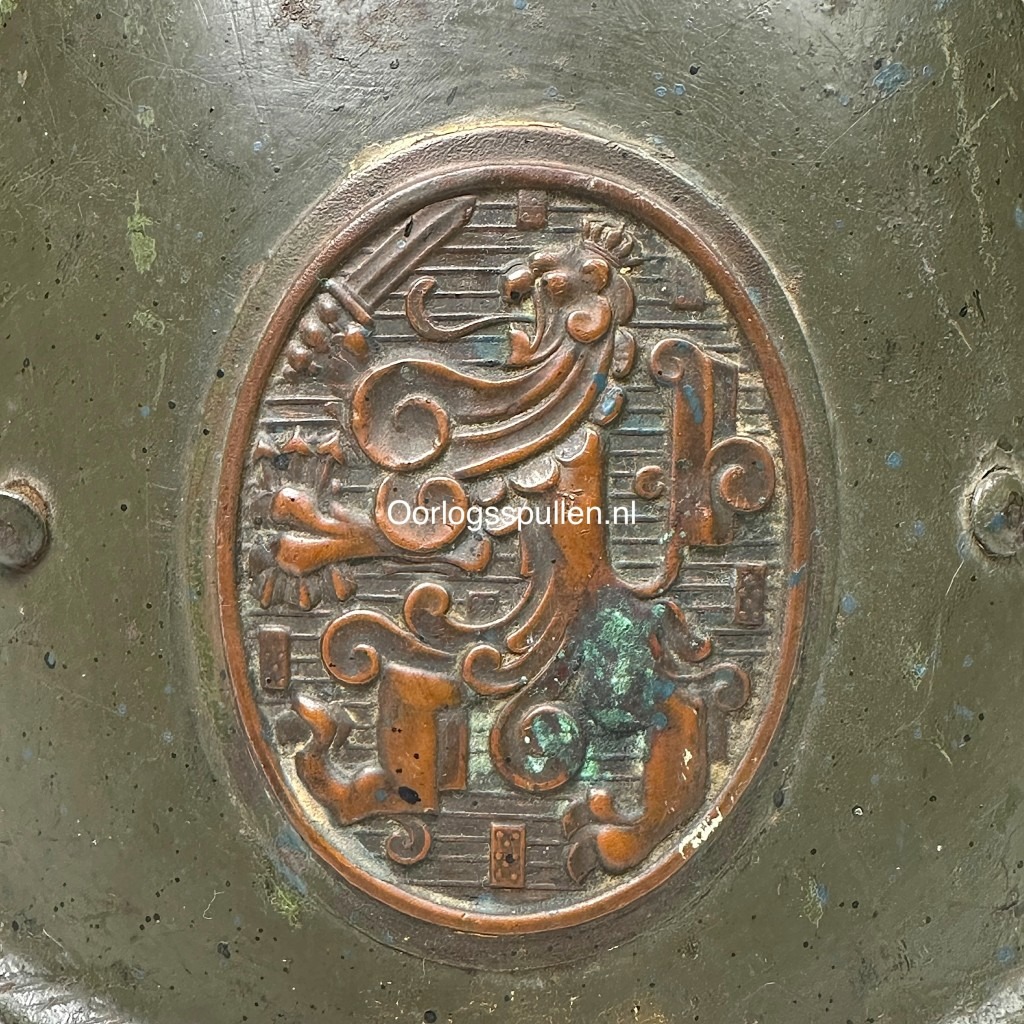 The helmet came in a green color and carried on the front a bronze emblem with the Dutch lion.