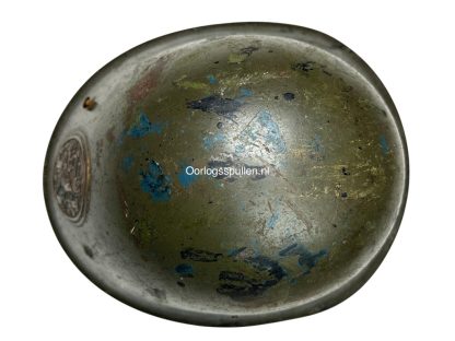 Op de helm zitten een paar losse klodders verf en vermoedelijk heeft de helm in een schuur of op een zolder gehangen, desondanks een leuk exemplaar!