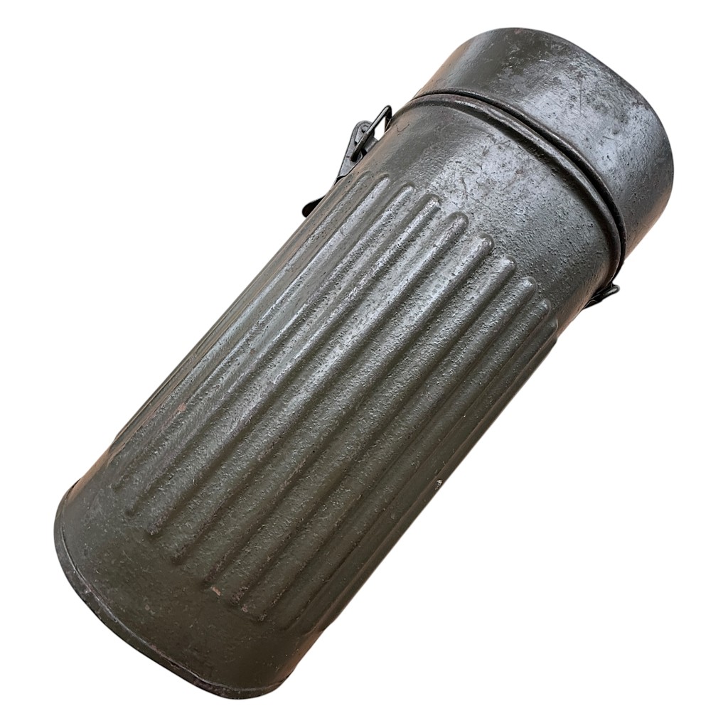 This rare Dutch Marines Pre-1940 gas mask canister is in good condition and this canister is finished in classic defense green and made of sturdy metal with characteristic vertical ribs that provide extra strength and recognisability.