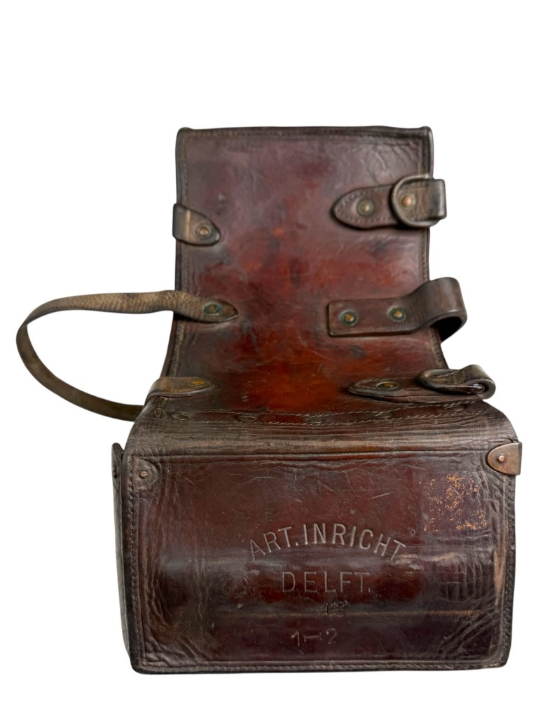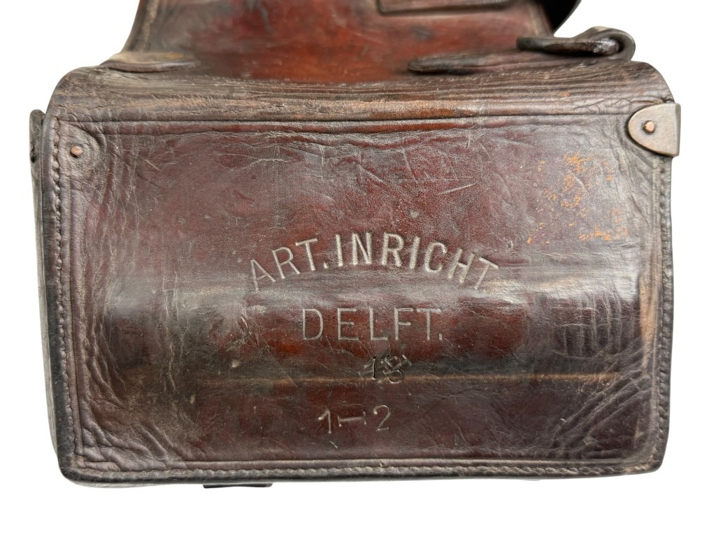 Aan de buitenzijde zijn duidelijke stempels zichtbaar, waaronder “ART. INRICHT. DELFT”, wat wijst op productie of uitgifte door de Nederlandse Artillerie-Inrichtingen in Delft.