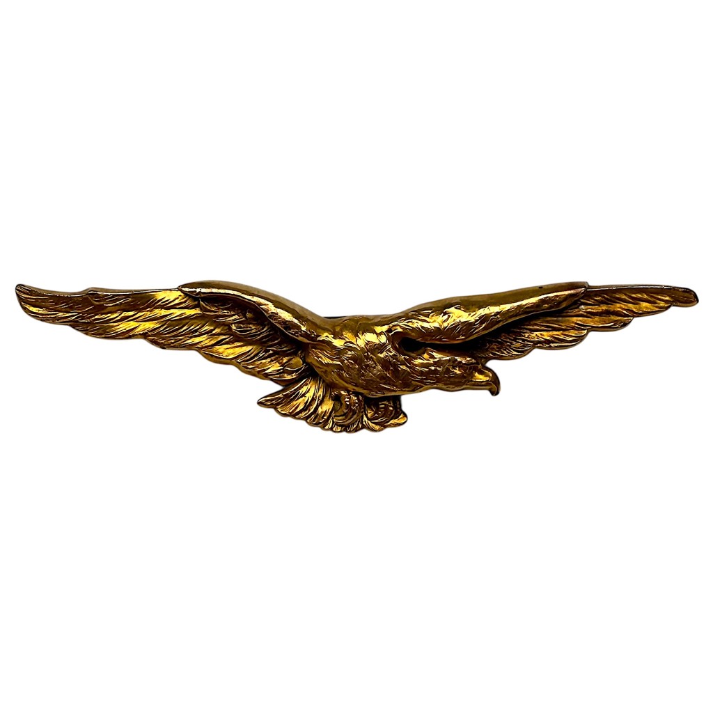This French pilot wing from the First World War is made of gold-colored metal and features a finely crafted eagle with outstretched wings, characteristic of early aviation insignia from the 1914–1918 period.