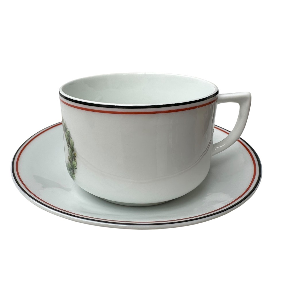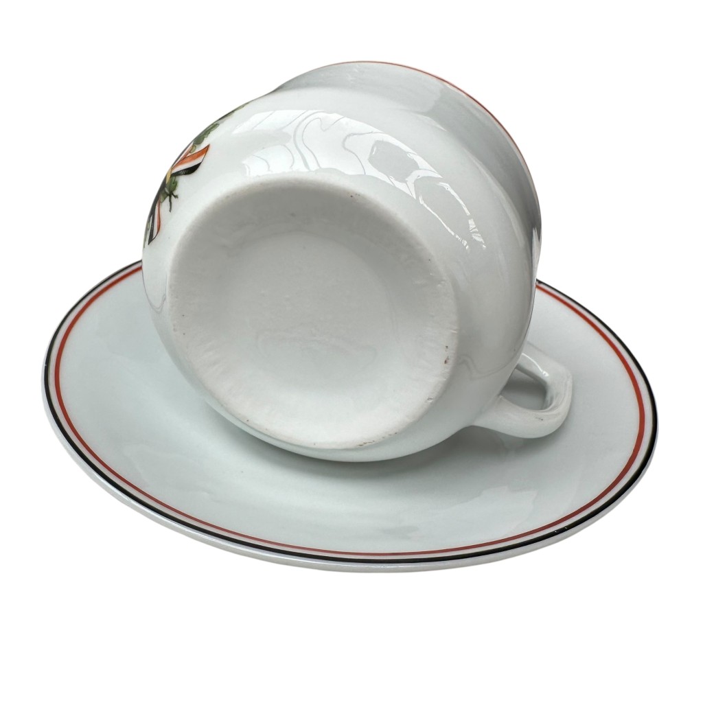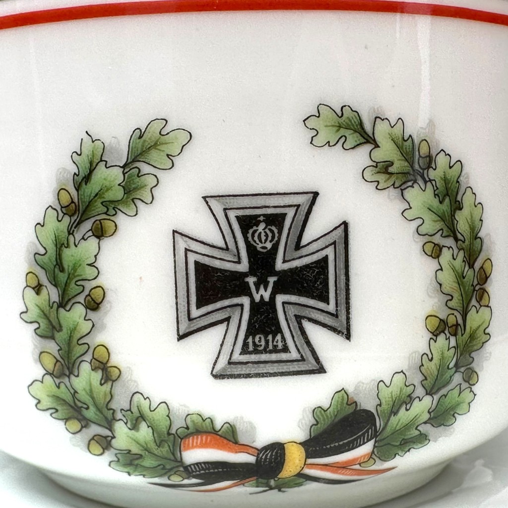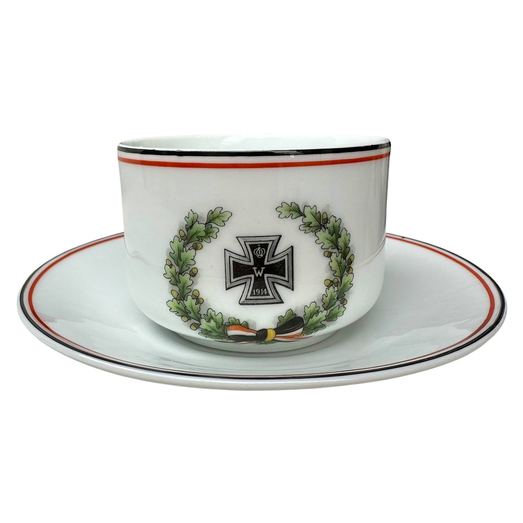 Original German porcelain cup and saucer from the First World War, decorated with the Iron Cross 1914 motif.