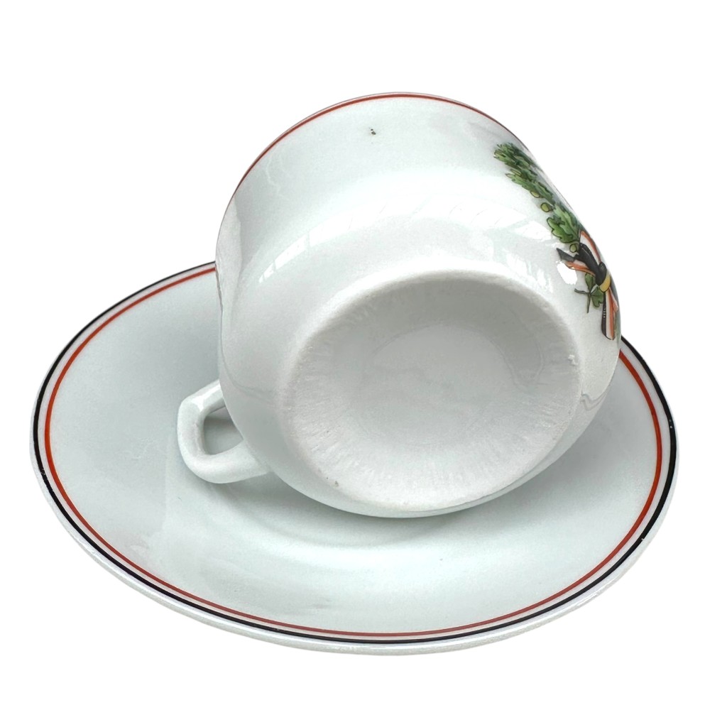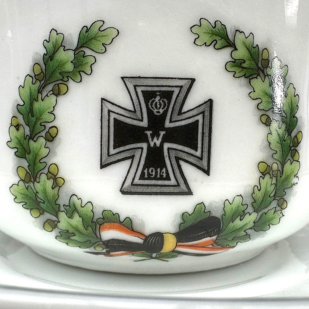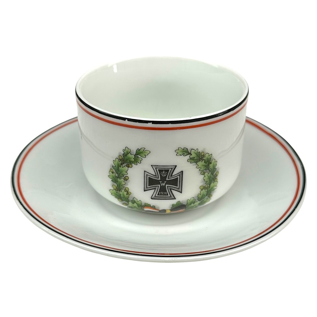 Original German porcelain cup and saucer from the First World War, decorated with the Iron Cross 1914 motif.