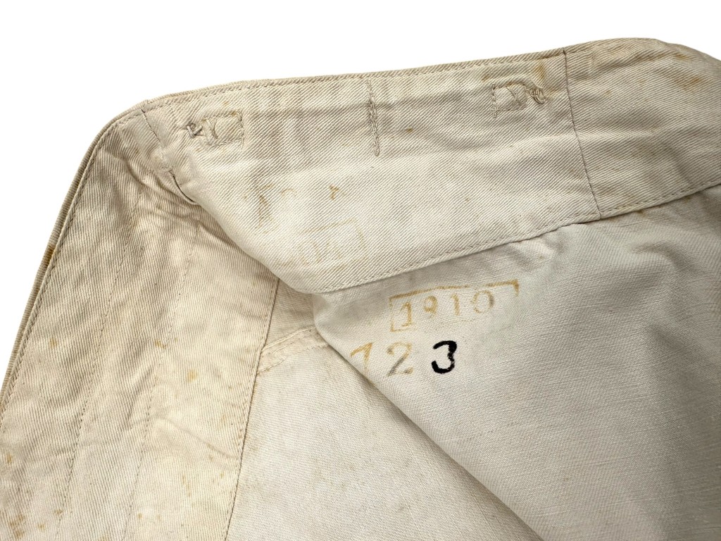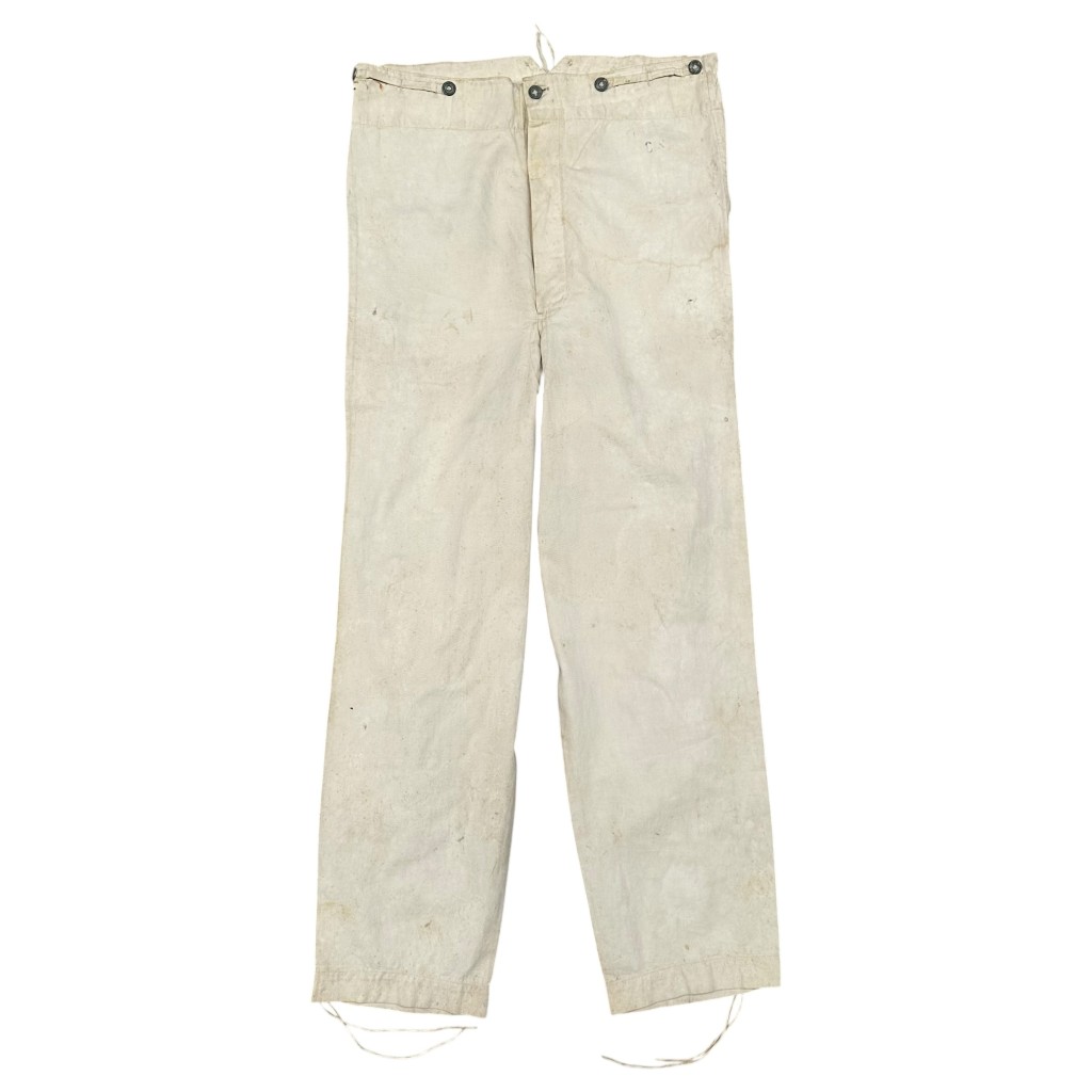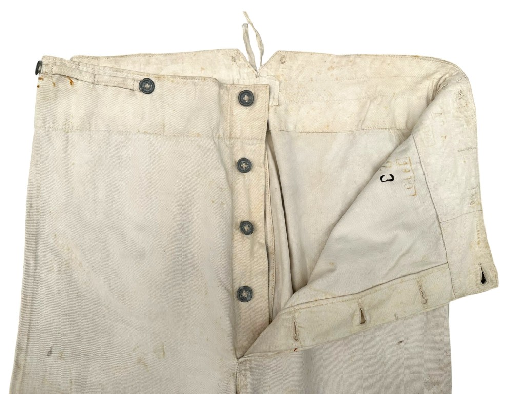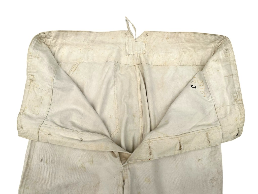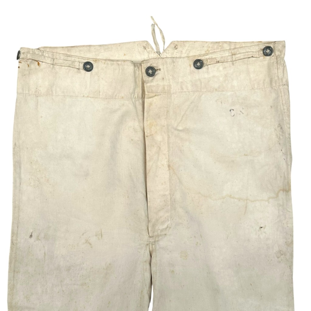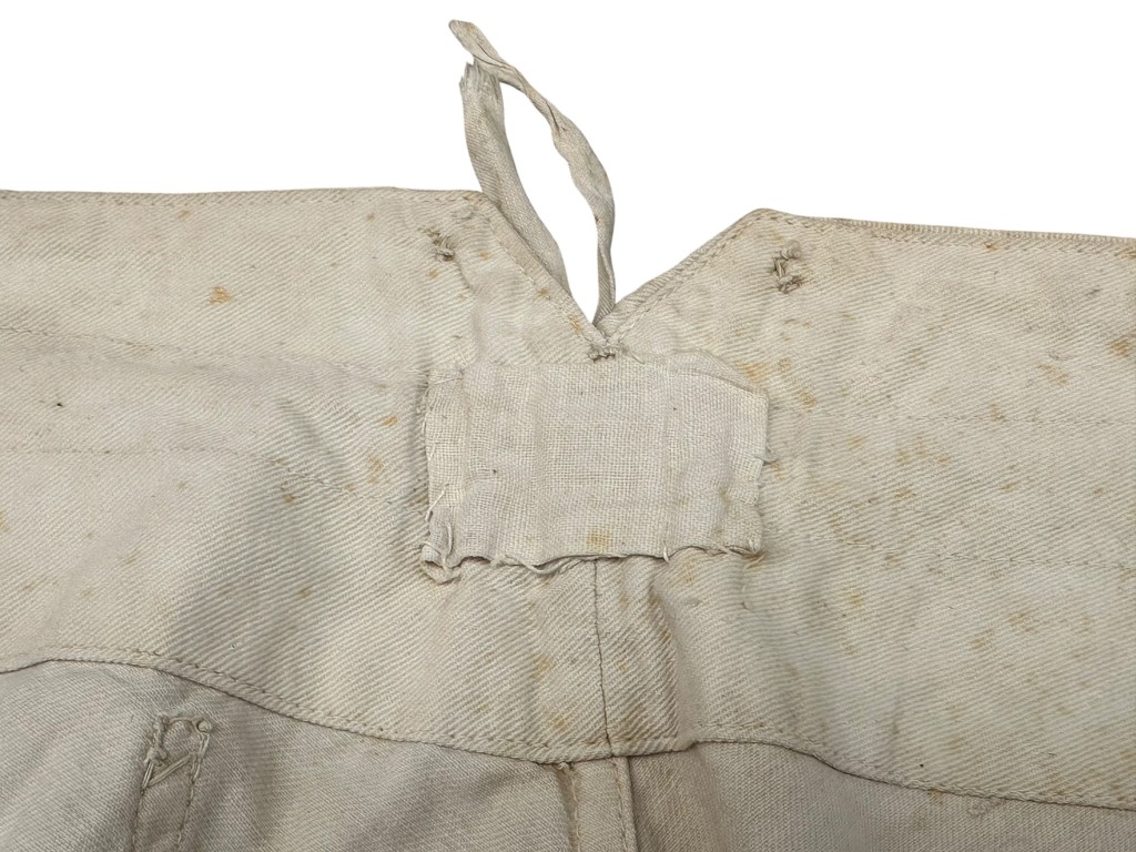 Original German army white enlisted work trousers from around 1910 used during the First World War.