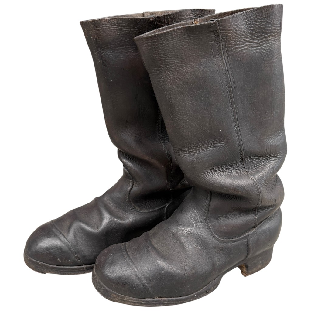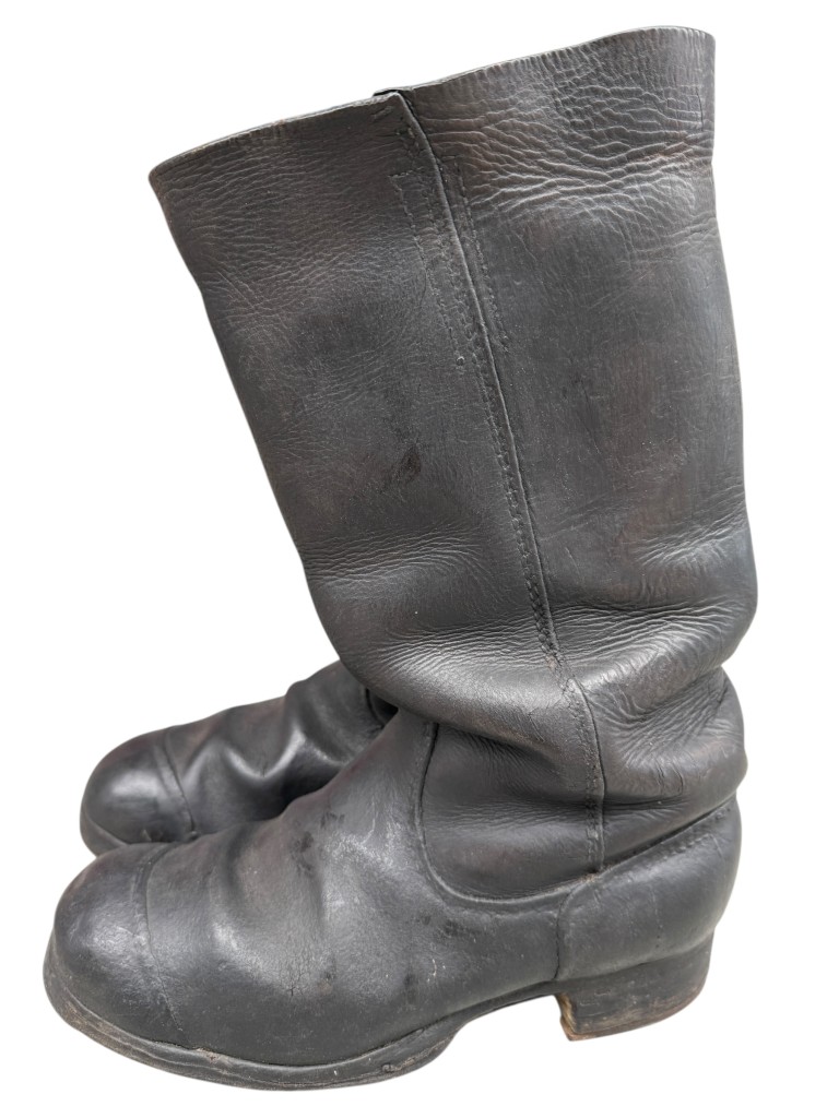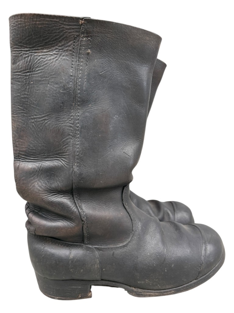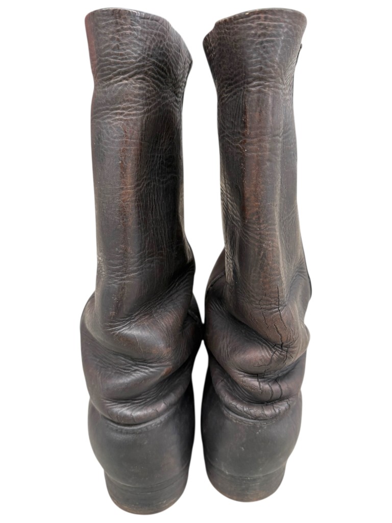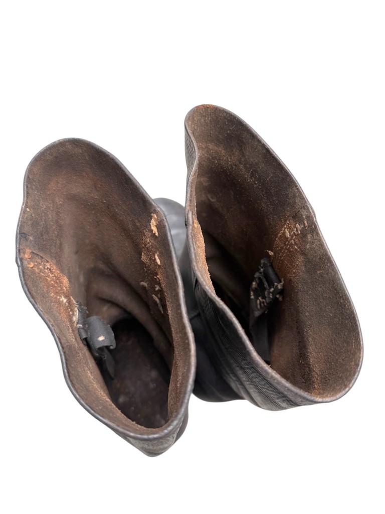 Een opvallend kenmerk is de verticale stiknaad over de zijkant van de schacht, een typisch detail dat uitsluitend voorkomt bij originele Duitse laarzen uit de Eerste Wereldoorlog.