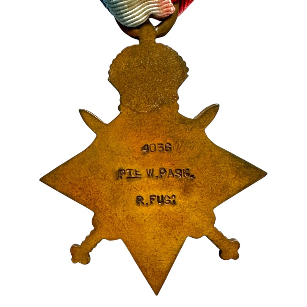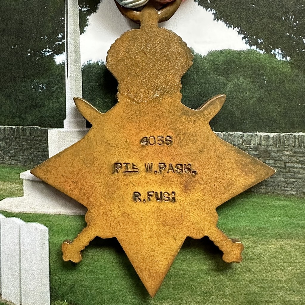 Originele WWI Britse 1914 Star William John Pask – Gesneuveld op 1 juli 1916 bij de Somme