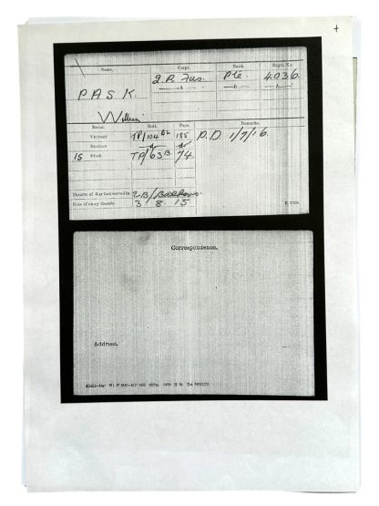 William John Pask diende in het 2nd Bn Royal Fusilliers en hij ligt begraven op de Hawthorn Ridge begraafplaats in Auchonvillers.