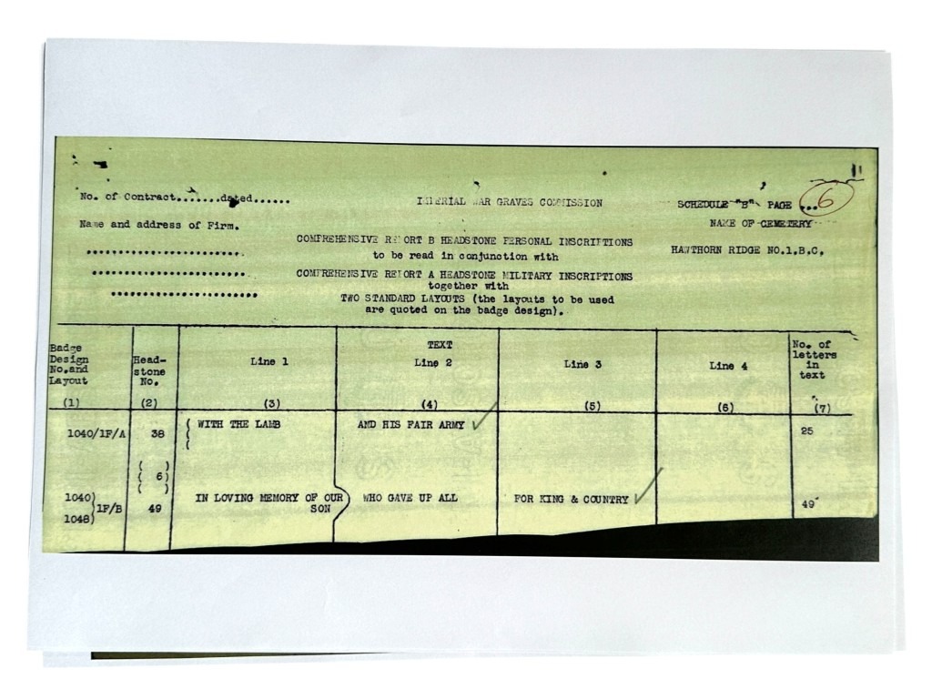 Along with this special medal comes the necessary research including a photograph of the cemetery and copies from the archives.
