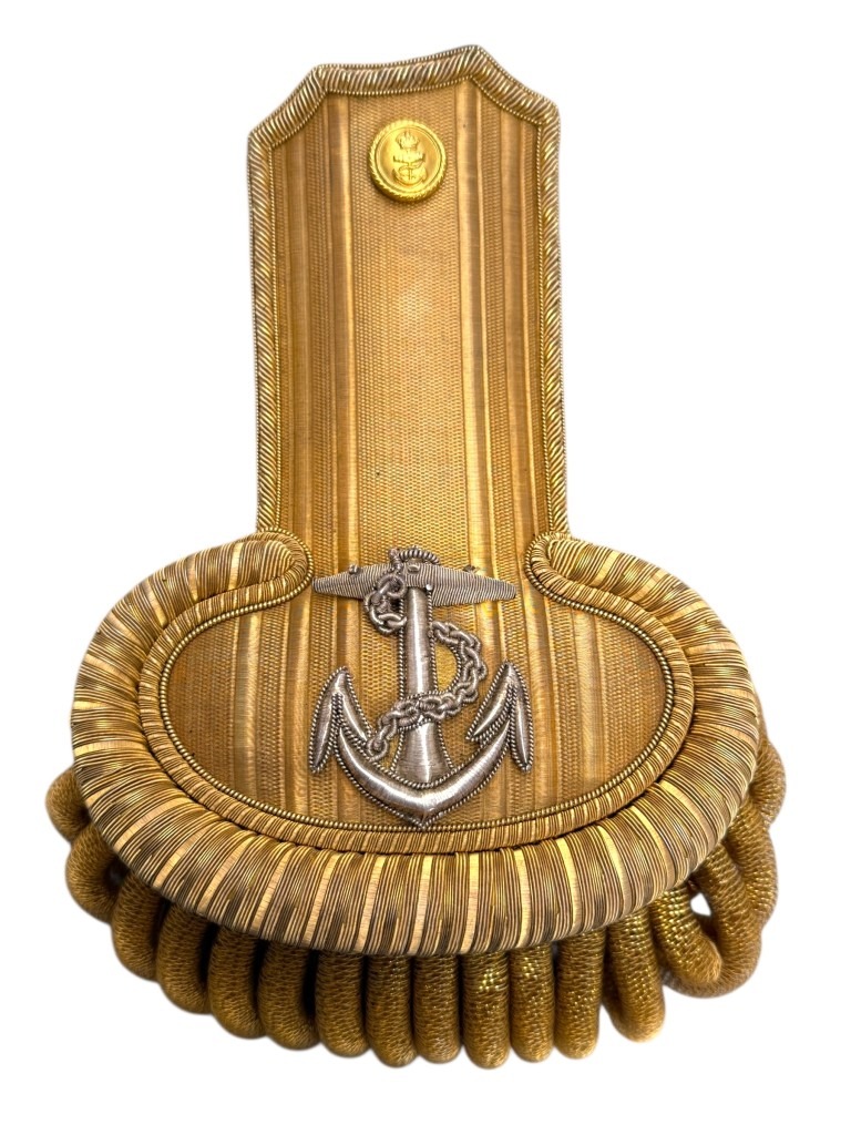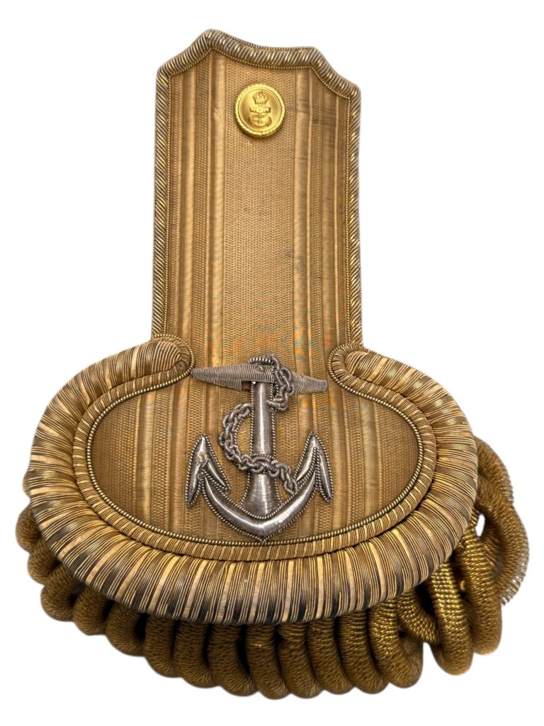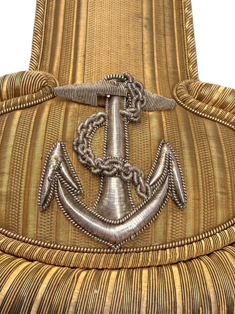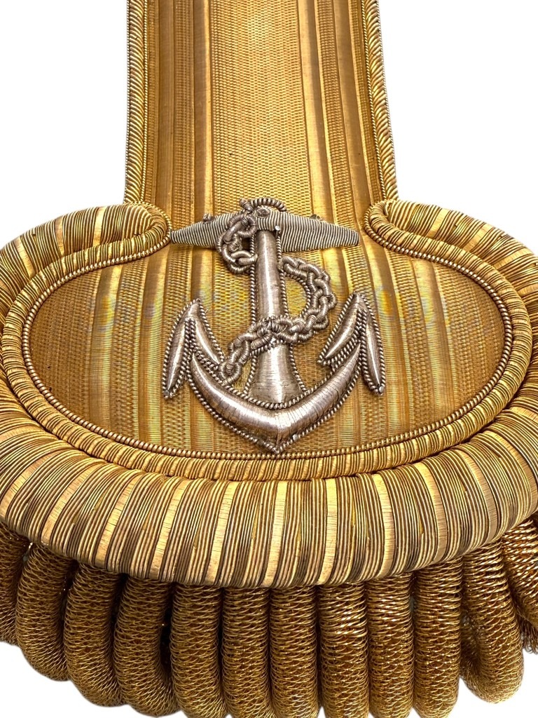 The epaulettes are made of gold bullion wire with rich bullion fringe and feature a finely detailed silver-coloured anchor emblem.