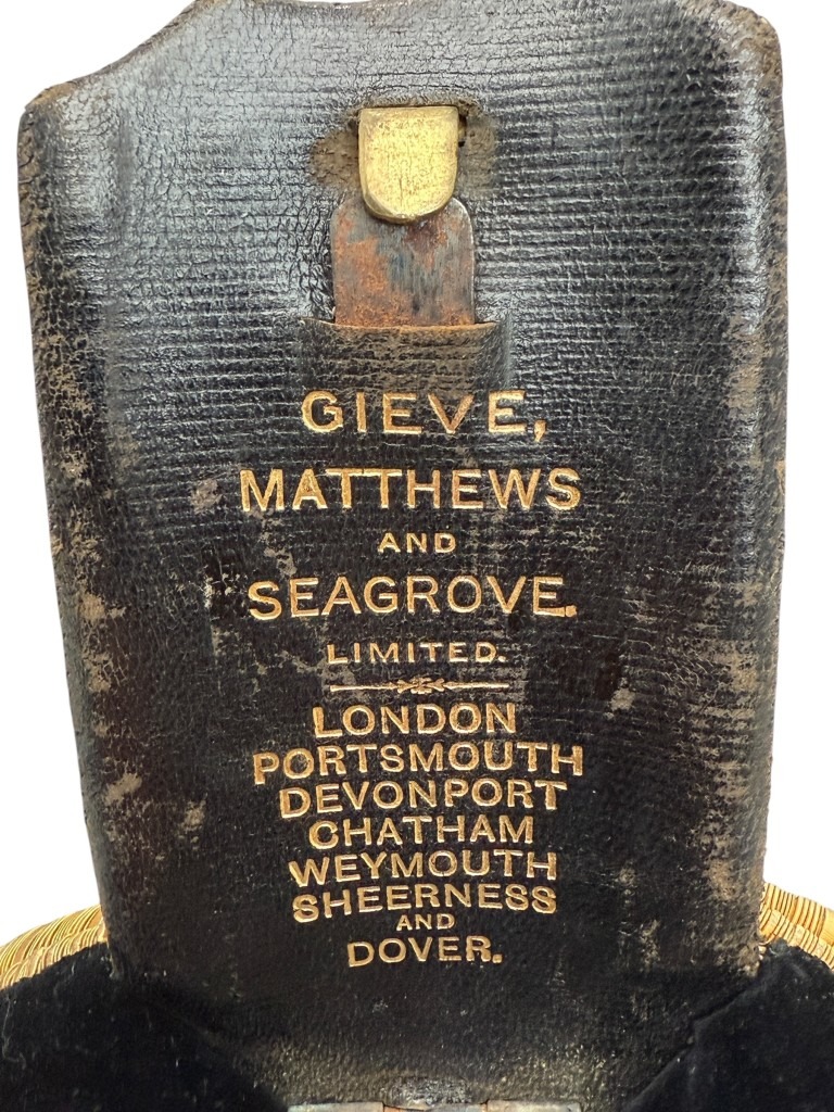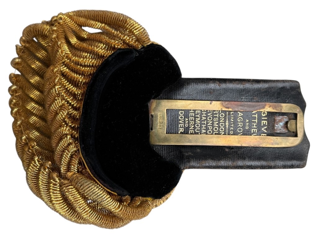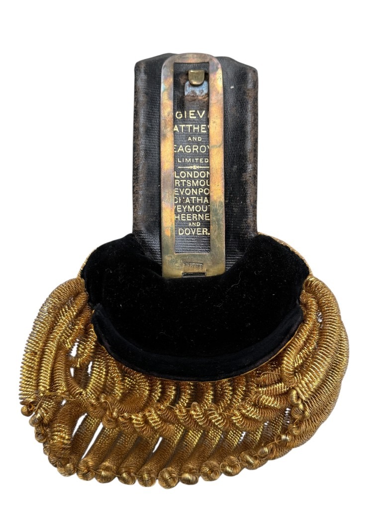 The reverse of the epaulettes is marked with the well-known manufacturer Gieve, Matthews & Seagrove Ltd., official supplier of uniform items to the British Navy, with branches in London, Portsmouth, Devonport, Chatham, Weymouth, Sheerness, and Dover.