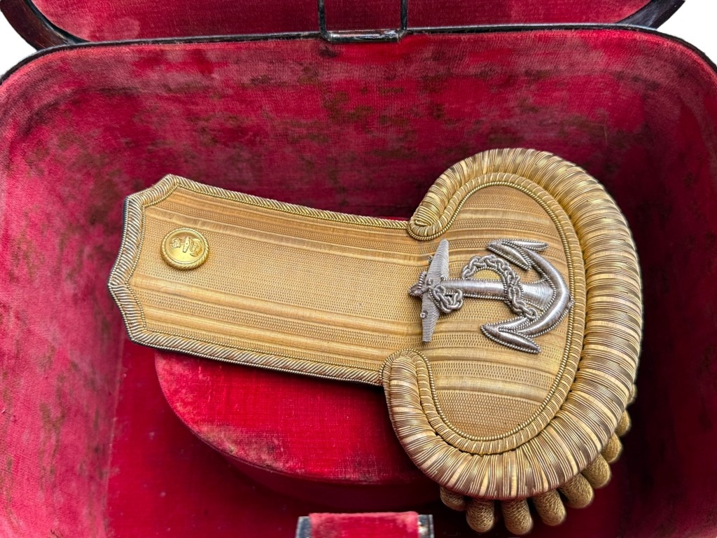 The case still contains the original holder for the epaulettes, ensuring they could be neatly stored.