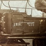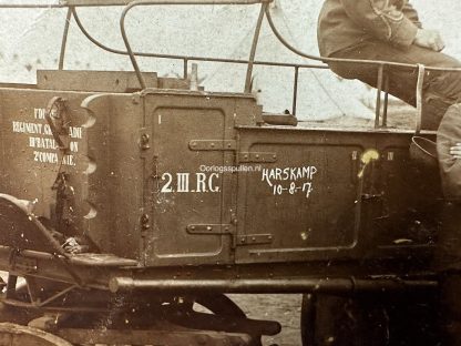 Op de foto is een wagen met daarop de eenheid geschreven te zien en deze foto werd afgedrukt op postkaart formaat.