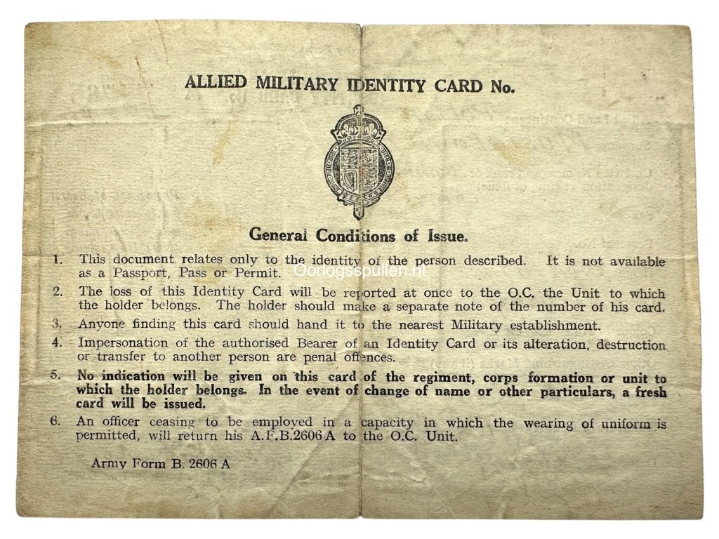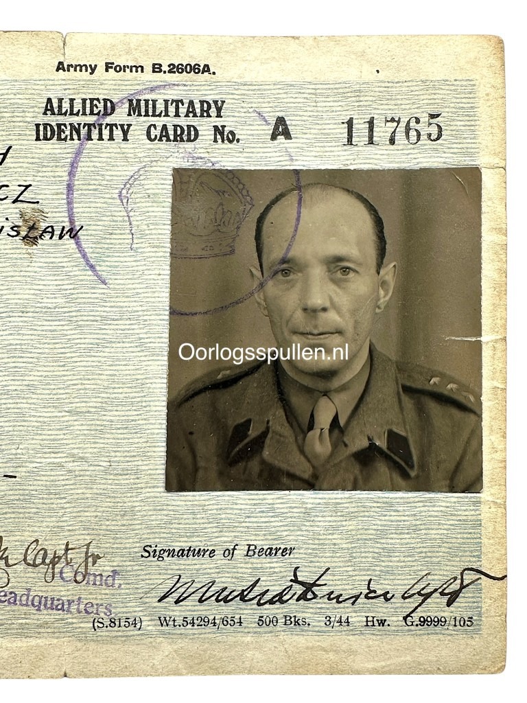 Deze Geallieerde militaire identificatie kaart is in goede conditie, compleet met pasfoto en behoorde foto een Poolse kapitein welke voor de Geallieerden vocht.