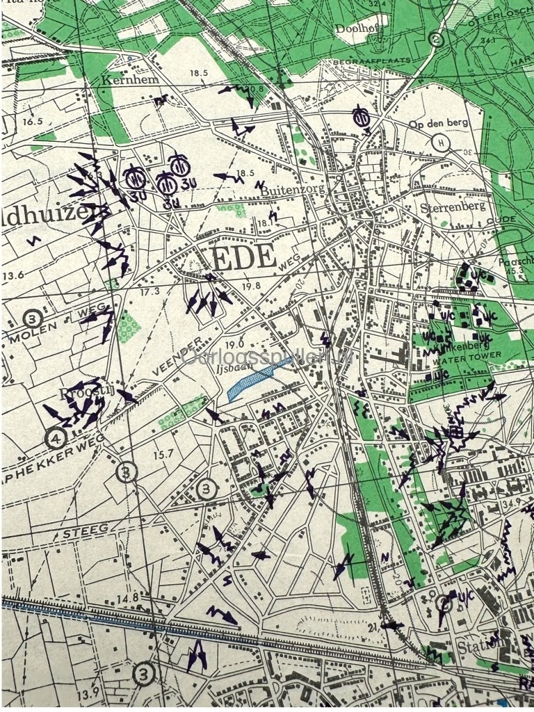 De kaart laat de Duitse troepen in de omgeving van Ede zien.