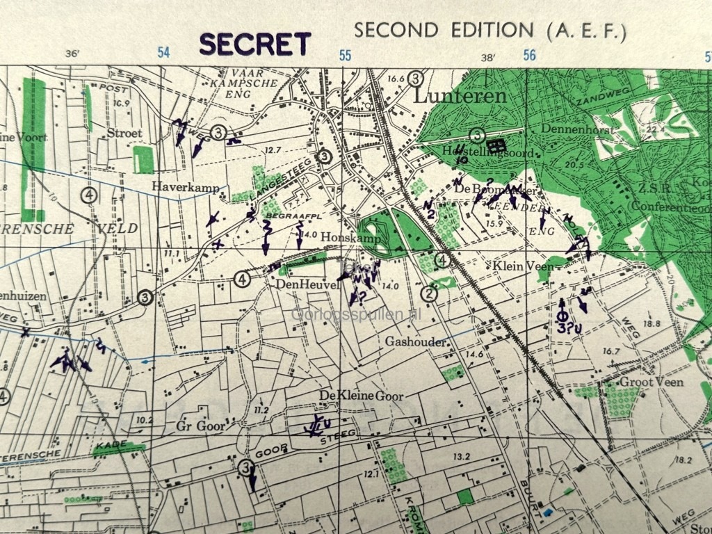 Originele WWII Geallieerde geheime kaart van Ede – maart 1945