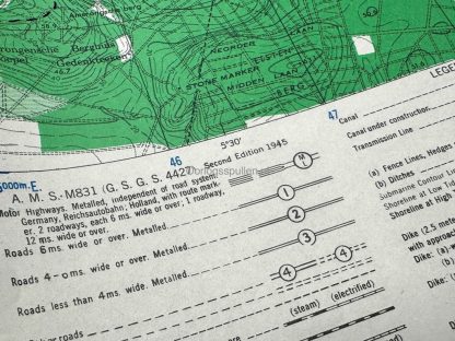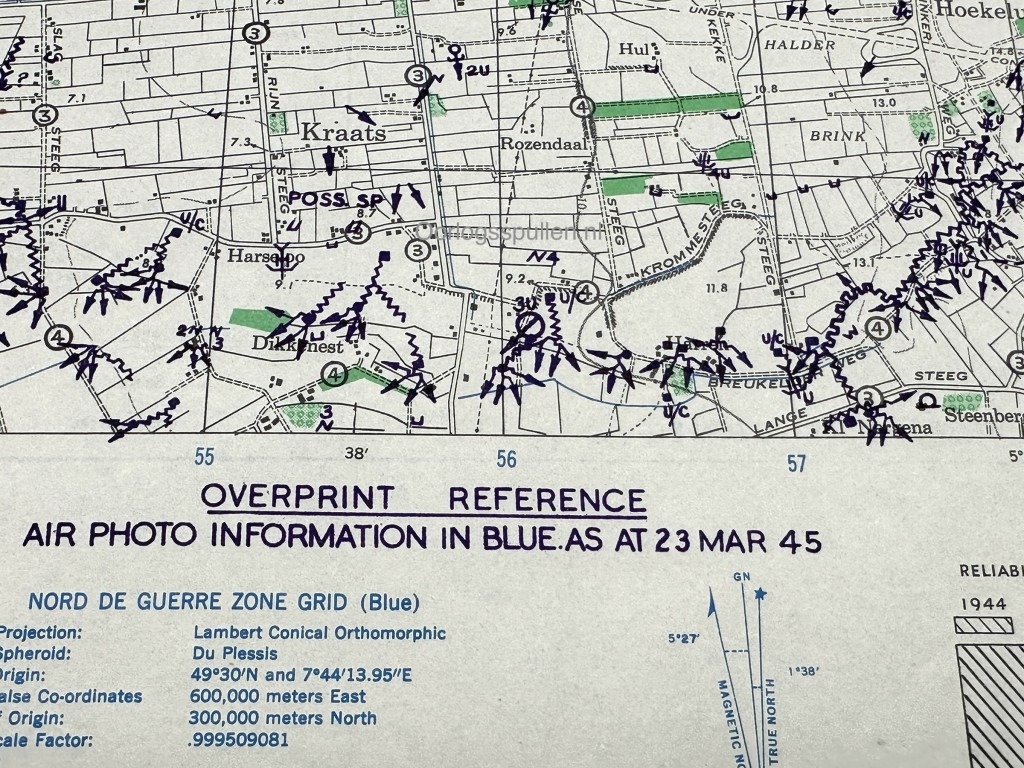 Deze geheime Geallieerde kaart is in goede conditie, en werd gebruikt op 27 maart 1945.