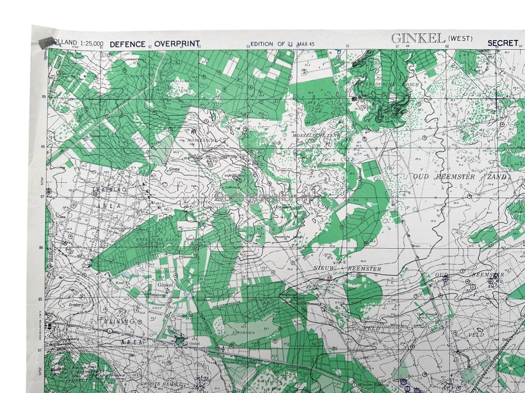 Originele WWII Geallieerde geheime kaart van Ginkel – 21 maart 1945