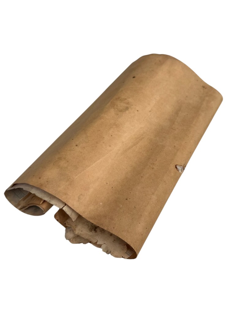 Het geheel is bewaard in opgerolde vorm zoals zichtbaar op de achterzijde.