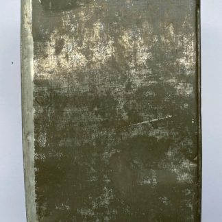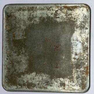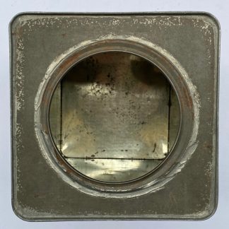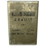 Het Britse biscuitblik is leeg en in gebruikte conditie, dateert uit 1944 en werd gebruikt tijdens de voedseldropping in Nederland gedurende de Tweede Wereldoorlog.