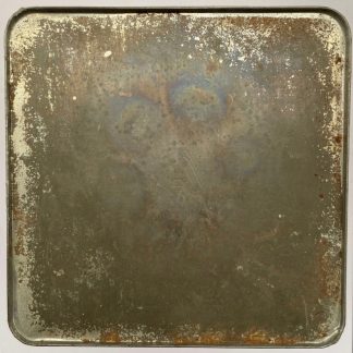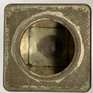 Het Britse biscuitblik is leeg en in gebruikte conditie, dateert uit 1944 en werd gebruikt tijdens de voedseldropping in Nederland gedurende de Tweede Wereldoorlog.