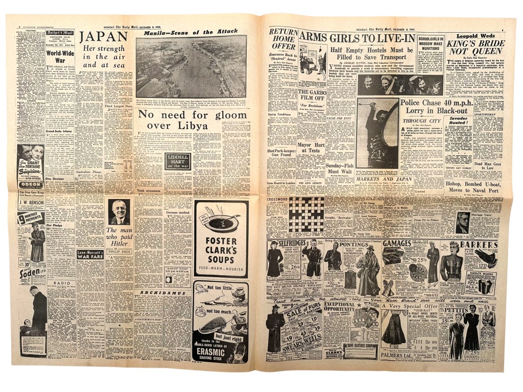 Originele Britse Daily Mail krant gedateerd 8 december 1941.