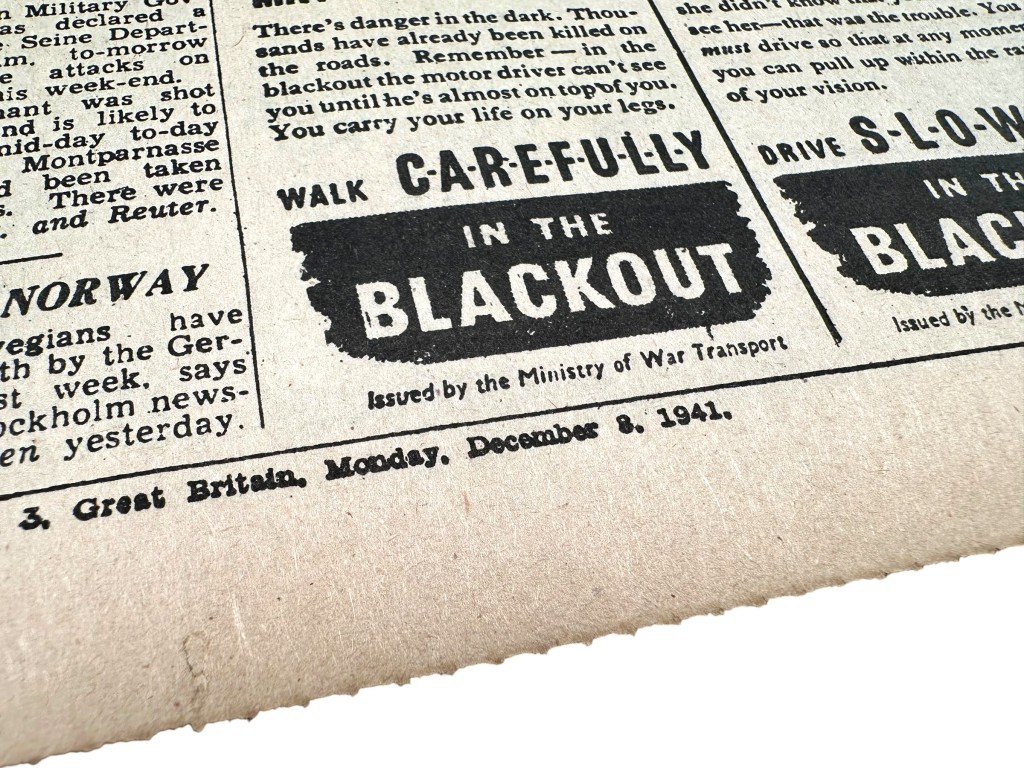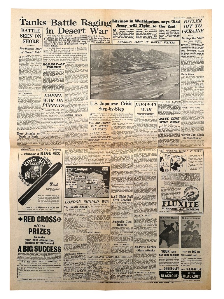 This edition was published immediately after the attack on Pearl Harbor and reports on Japan declaring war on Britain and the United States.