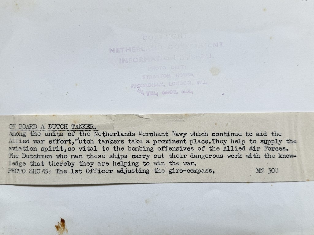 Original WWII British photo Dutch Merchant Navy officer on board a tanker